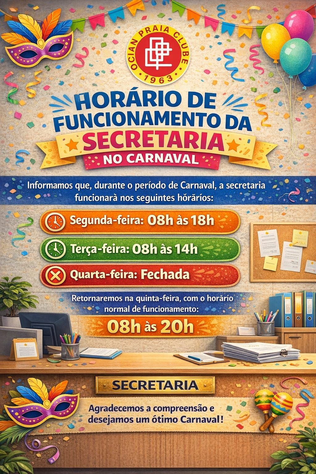 Consulte os horários na Secretaria do Clube: